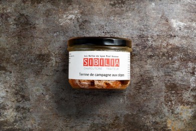 Conditionnement : la terrine de campagne aux cèpes est conditionnée en conserve sous pot de verre afin conserver toutes ses qualités gustatives
